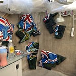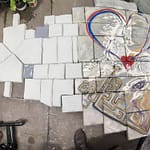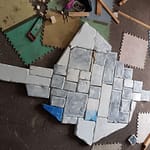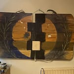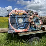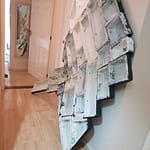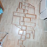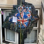 Evolution of my artistic approach to the quantum experience: Rosa britannica: Straight lines end in nooks and corners; paradoxically, at the time of the Industrial Revolution, corners were famous for straightening out the “twisted” people of their time. The Birmingham museum highly appreciates the Newtonian model that measures and predicts everything. It was the nostalgic inspiration to make the “Rosa britannica” with petals stamped with the British flag, linked to the infinite Universe. It uses pigments, oils and beeswax on thirty-nine canvas stretchers fixed with screws, making it flexible and able to be displayed on flat, rounded or angled walls. We are so immersed in the paradigm of square shapes that this strategy is a subtle way of rethinking something closer to the quantum world. Uniting many squares and other geometric shapes could explain how to get out of the rigidity of the square frame, agreeing with the curved “forces of nature” without offering space to the famous Lucifer of details. Advances in science also bring new emotions. And that human transcendence in the search for knowledge must be the true leitmotif of art.