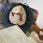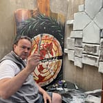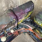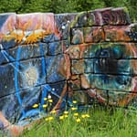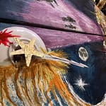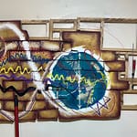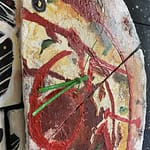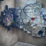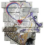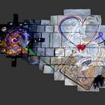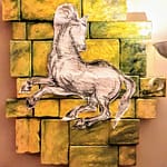 Horses symbolise society: The graffiti of one painted on a stone wall, as a solid statement for seven different ways of learning over time in our community life. In life, you must be curious to understand your growth process. Humans transcend by going through seven different essential life experiences, and this fact is disturbing once we know it, if I can’t internalise here and now, in which part of the process is linked between matter, feelings and imaginary time I am in it. Societies in constant evolution are made and always connected to the dust of the stars; on the other hand, the clock with silver hands represents the precious time we consume living our lives prospering in society. The red heart symbolises our soul, where we record experiences as time passes. 1. In the horse’s tail with a black tie to human passions: sex and lust. 1. At the bottom of the horse, the black eye represents people who learn through painful lives. 2. On the luminous chest of the horse, the face of people trapped in the labyrinth of gold, seeking to understand power. When death comes to them, they take to their hearts only what they have learned, symbolised by a yellow line. 3. On top of the horse are those who live and love but are not expressive of that love. When these lovers die, they carry their deep experiences from their hearts in a blue line and rest in the All. 4. At the head of the horse are those who love and know how to express that love, connected in red to Everything. 5. Above, those who see God in all things connect with the purity of blank thought. 6. And finally, the enlightened in this society. Thanks to their inner vision, they come to understand and realise God in themselves, connecting all the lines of different colors of learning into a single symbol of love and peace in the heart.
