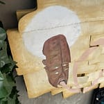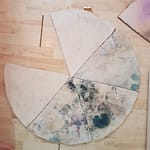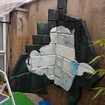Esta historia de Krishna plasmada en mi obra, refleja un núcleo de partículas gemelas conectadas simultáneamente en el Sol, la Tierra y en el Infinito con un reloj retrógrado. Intento crear piedras unidas curvadas como el Universo—una propaganda para el hermoso mundo de la incertidumbre cuántica—cubriendo las esquinas antinaturales de nuestra arquitectura caótica.