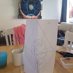 Inspirado por esta hermosa realidad, creé un tributo utilizando un grupo de pequeños marcos, cada uno interconectado flexiblemente y cubierto por otra pieza de tela. Cuando la pintura esté completa, cada marco imitará la imagen entera, reflejando el principio holográfico descrito en el experimento de la rosa.