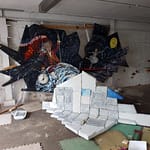 The figure in the painting, dressed in antiquated clothing, clings to the Earth’s original axis, symbolizing resistance to change. His possessions—depicted as a melting shoe—represent the transient nature of material power. A distorted clock with oversized hands emphasizes humanity’s distorted relationship with time, while an energy drink can floating in the ocean reflects the waste we leave behind.